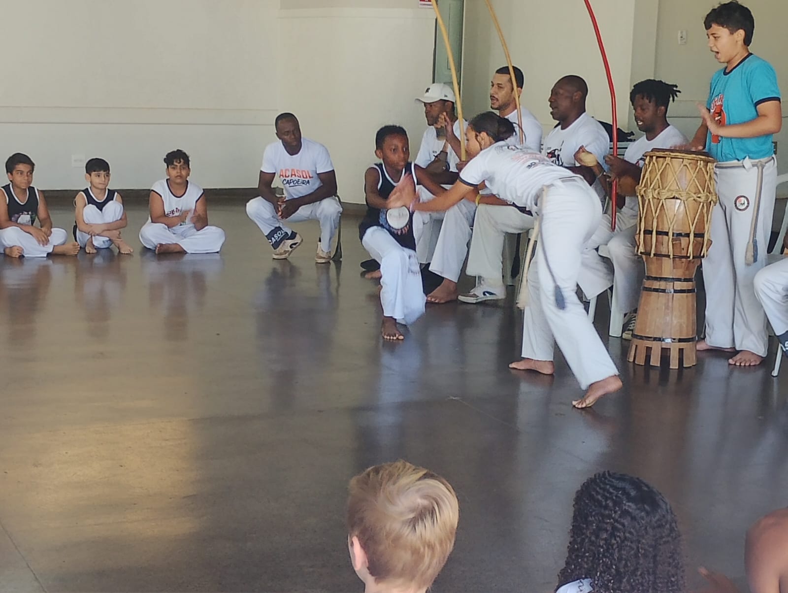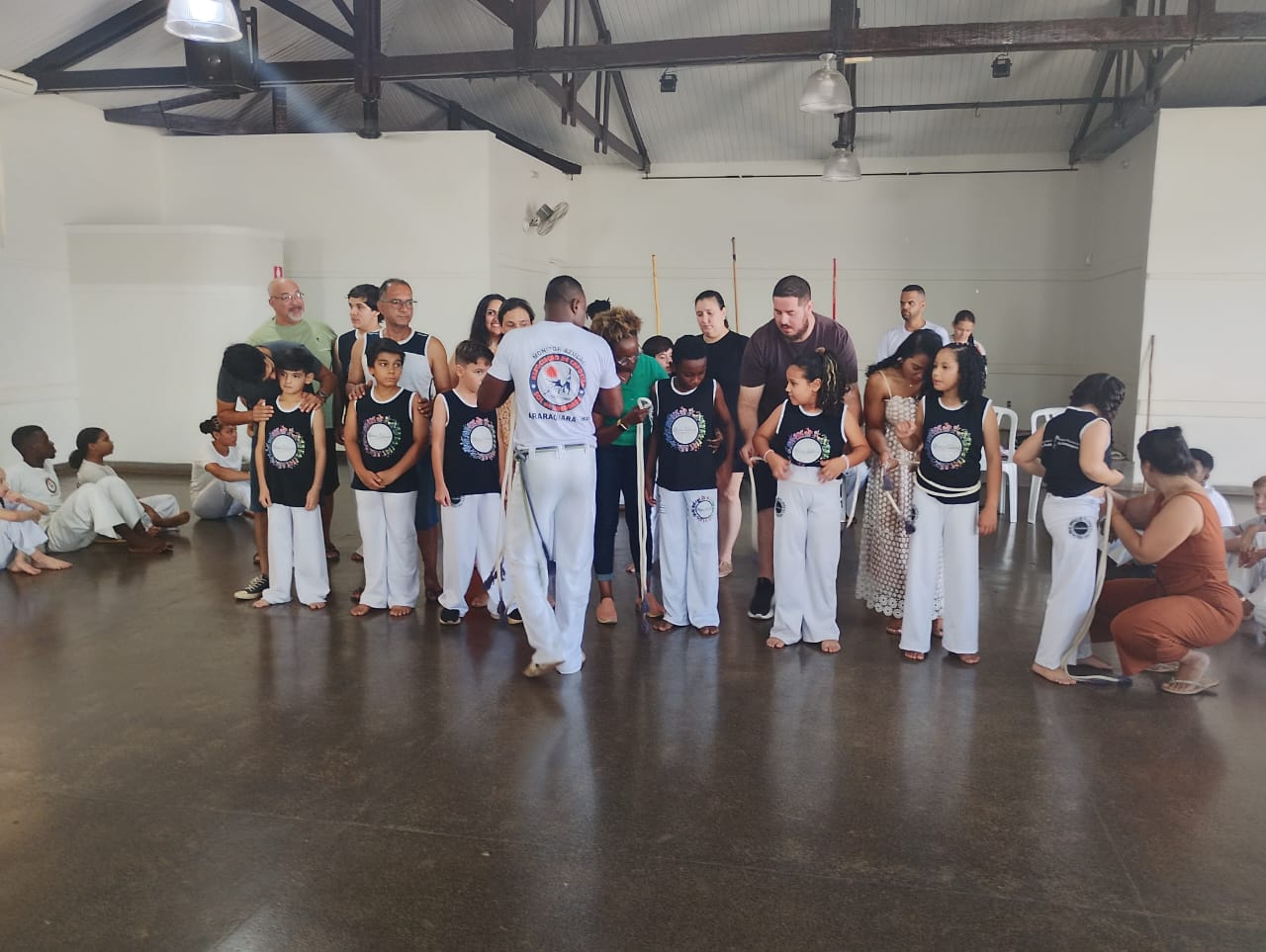 Cada roda formada mostrava não só a evolução das crianças, mas também a união, o respeito e a força da comunidade. Ver as crianças recebendo suas cordas, sorrindo e superando desafios, deixou claro o quanto o capoeira transforma vidas.