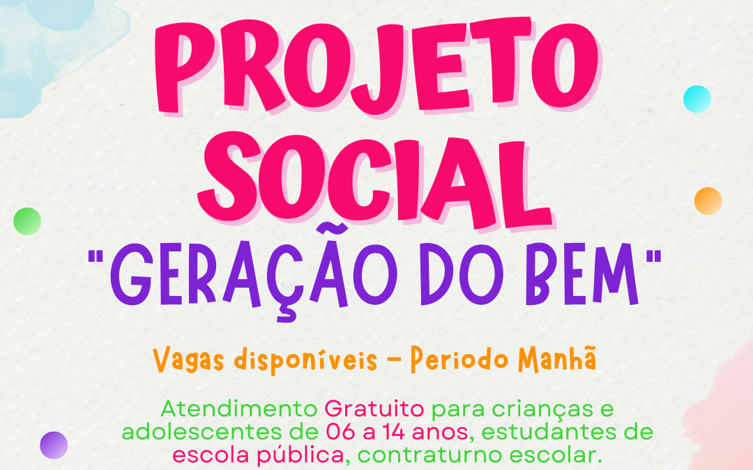 Você é nosso convidado para a apresentação final do Projeto Social “Geração do Bem” ! Será uma noite cheia de alegria, talentos, aprendizado e celebração. Vamos juntos prestigiar o crescimento e as conquistas das crianças que fazem do nosso projeto um...